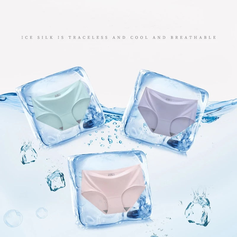 TrowBridge 10PCS/Set Women's Panties Solid Seamless Underwear Plus Size Comfortable Briefs Silk Satin Lingerie Health Underpants